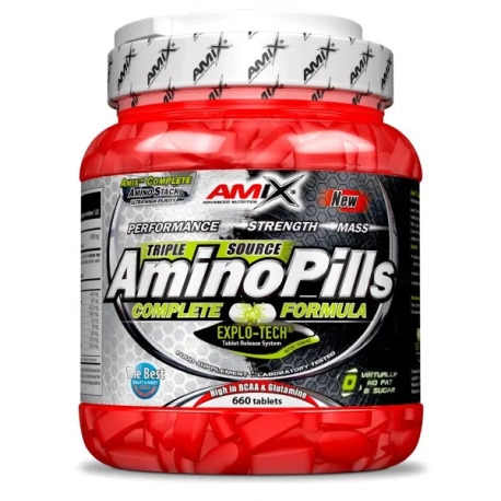 Amix ™ Amino Pills jest nowocześnie złożonym kompleksem aminokwasowym, który stanowi idealne źródło uzupełnienienia aminokwasów w organizmie w okresie intensywnego treningu i diety, ze względu na bardzo niską zawartość tłuszczu i cukru. Preparat Amino Pills to kompleksowy preparat składający się z aminokwasów i serwatki hydrolizatu białka wołowego i sojowego. Osoby, które na co dzień bardzo dużą i wyczerpująco trenują, powinny wspomóc swój organizm preparatami, które zawierają niezbędne składniki odżywcze, szczególnie wtedy, gdy dieta przez nie stosowana w pełni tego nie wyczerpuje. Jeśli taka sytuacja ma miejsce, wówczas niezbędne są nam odżywki, które dzięki swoim właściwością uzupełnią utracone podczas intensywnego treningu pierwiastki i minerały oraz zapobiegną redukcji białek w mięśniach. Podstawowym elementem, który należy uzupełnić będzie oczywiście białko, które występuje naturalnie w pożywieniu takich produktach jak mięso, szczególnie drobiowe, ryby, nabiał, białko sojowe i pszeniczne. Uzupełnienie diety w aminokwasy zapewnią także odżywki, które zawierają duże ilości tego budulca dla mięśni.