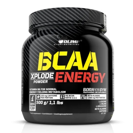 Olimp BCAA Xplode powder Energy – jest to preparat, podczas tworzenia którego wzięto pod uwagę szereg czynników jakie towarzyszą organizmowi podczas ciężkich treningów (np. osłabienie i brak energii, katabolizm i problem z utrzymaniem dodatniego bilansu azotowego). Jeżeli poszukujesz produktu o relatywnie prostym składzie, który jednak okazuje się nadzwyczaj kompleksowy – sięgnij właśnie po niego! Każda porcja poza solidną dawką aminokwasów rozgałęzionych BCAA (w proporcji 2:1:1) dostarcza także kofeinę, która należy do jednych z silniejszych stymulantów – powinieneś brać to pod uwagę w przypadku wieczornych treningów.