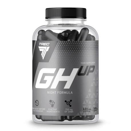 Trec GH UP to suplement diety w kapsułkach, który zawiera starannie dobraną kompozycję aminokwasów oraz ekstraktów roślinnych. W jego składzie znajdują się m.in. L-arginina, L-lizyna i L-ornityna, które pełnią różnorodne funkcje fizjologiczne w organizmie. Produkt został również wzbogacony o melatoninę oraz ekstrakt z Rhodiola rosea, znany ze swojego zastosowania w suplementacji osób aktywnych.