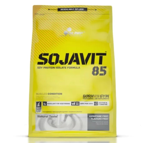 Olimp SOJAVIT 85 - najwyższej jakości, czysty izolat białek sojowych, wzbogacony aktywatorami metabolicznymi (choliną, inozytolem i L-karnityną), witaminami i minerałami, zapewniającymi prawidłowy przebieg procesów metabolicznych przy wysiłku i po spożyciu białek.