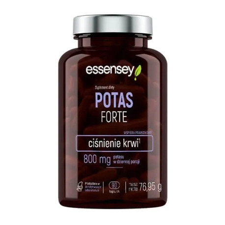 Essensey Potas Forte - światowej klasy suplement będący bogatym źródłem znakomicie przyswajalnego potasu. Jest to jeden z ważniejszych minerałów w organizmie człowieka, który uczestniczy między innymi w syntezie protein w rybosomach, ale i w przemianach metabolicznych/enzymatycznych. Wpływa na utrzymanie równowagi elektrolitowej organizmu, jak i w utrzymaniu odpowiedniego ciśnienia osmotycznego komórek. Znajduje się jako jeden z głównych składników w pompie sodowo-potasowej odpowiadającej za potencjał czynnościowy komórek nerwowych, a więc bierze udział pośrednio w przekazywaniu impulsów nerwowych.