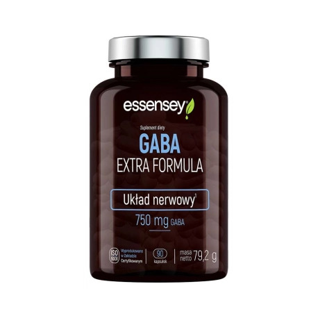 Essensey Gaba Extra Formula to suplement diety zawierający w swoim składzie połączenie kwas gamma-aminomasłowego (gaba) wraz z witaminą B6. Gaba to substancja naturalnie występująca w organizmie człowieka, która jest powiązana z funkcjonowaniem układu nerwowego. Witamina B6 z kolei wspiera prawidłowe działanie układu nerwowego oraz funkcje psychologiczne [1]. Suplementacja opisywanym produktem może zatem stanowić ciekawe uzupełnienie codziennej diety w okresach intensywnego wysiłku zarówno psychicznego jak i fizycznego.