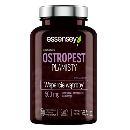 Essensey Ostropest plamisty - wysokiej jakości preparat bazujący na ostropeście plamistym (Silybum marianum), a konkretnie na ekstrakcie pozyskiwanym z jego nasion które odznaczają się olbrzymią koncentracją substancji aktywnych biologicznie. Formuła jest w pełni jawna i przejrzysta - nie znajdziesz w niej zbędnych dodatków. Wpływa pozytywnie na stan wątroby oraz jej regenerację. Sprzyja detoksykacji, a więc usuwaniu szkodliwych produktów przemiany materii z organizmu. Bywa stosowany celem wzmocnienia układu pokarmowego i usprawnienia procesów trawiennych.