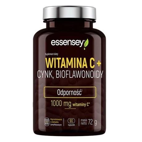 ESSENSEY WITAMINA C + CYNK, BIOFLAWONOIDY - wysokiej klasy suplement skierowany zarówno do zawodowców, jak i osób pragnących wesprzeć swój układ odpornościowy. Jest on jednym z najważniejszych, stąd często na tych właściwościach skupiamy się, patrząc na witaminę C oraz cynk, podczas gdy ich zakres pozytywnego wpływu na funkcjonowanie całego organizmu jest znacznie szerszy. Produkt występuje w postaci kapsułek, których połknięcie nie będzie problemem.