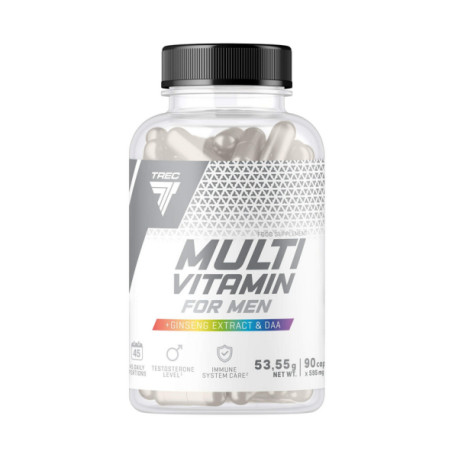 Multivitamin for Men to suplement diety w postaci kapsułek, łączący kompleks witamin i minerałów przeznaczony dla mężczyzn. Formuła została dodatkowo wzbogacona o składniki często stosowane w preparatach męskich: L-argininę, ekstrakt z korzenia żeń-szenia koreańskiego, kwas D-asparaginowy (DAA), taurynę, a także magnez i cynk.