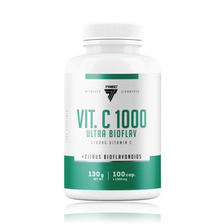 Trec Vitamin C 1000 Ultra Bioflav - jest to wyjątkowo udane połączenie kwasu l-askorbinowego oraz bioflawonoidów cytrusowych, których zadaniem jest wzmocnienie układu immunologicznego, wsparcie organizmu w walce z wolnymi rodnikami tlenowymi, ale i usprawnienie regeneracji stawów. Wynika to z faktu, że witamina C uczestniczy w procesie syntezy kolagenu ludzkiego, którego wpływ na układ ruchu, kondycję włosów, skóry oraz paznokci jest niezaprzeczalny. Wybierając ten preparat, stawiasz na sprawdzone rozwiązanie! Trudno bowiem nie docenić solidnej dawki witaminy C oraz bioflawonoidów w jednej porcji.