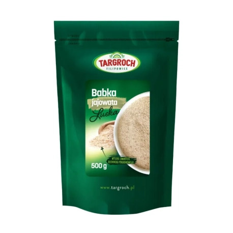 TARGROCH BABKA JAJOWATA ŁUSKA (CZYSTOŚĆ 85%) - babka jajowata (z łac. Plantago ovata) jest niezwykle popularną rośliną o szerokim zastosowaniu, która występuje w swojej naturalnej formie w basenie Morza Śródziemnego, ale i w Afryce i zachodniej Azji. Jest oczywiście uprawiana w innych regionach świata, np. w Indiach oraz Pakistanie. Ceniona jest głównie za wysoką zawartość błonnika pokarmowego regulującego prawidłową pracę jelit, ale i poziom cukru we krwi.